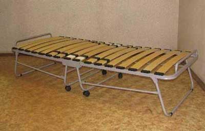 Кровать КР-11М С 858 Каркас кровати: металлическая тонкостенная мебельная труба с надежным полимерным порошковым покрытием. Спальное место: ламели с регулируемой жесткостью. Средние ламели двойные: 6 рядов  по 2 штуки.   Сам чехол матраса съемный (снимается на стирку), съемный матрас фиксируется к ламельному основанию с помощью застежек-липучек. Кровать оснащена роликами  для удобства перемещения в сложенном виде. Комплектация: матрас и чехол для хранения. Есть самооткрывающийся механизм складывания. Габариты: 83х200см, в сложенном виде высота 125см.           Максимальная  нагрузка: 160кг. Цена 7 350 руб. Цена со скидкой 6 980 руб.